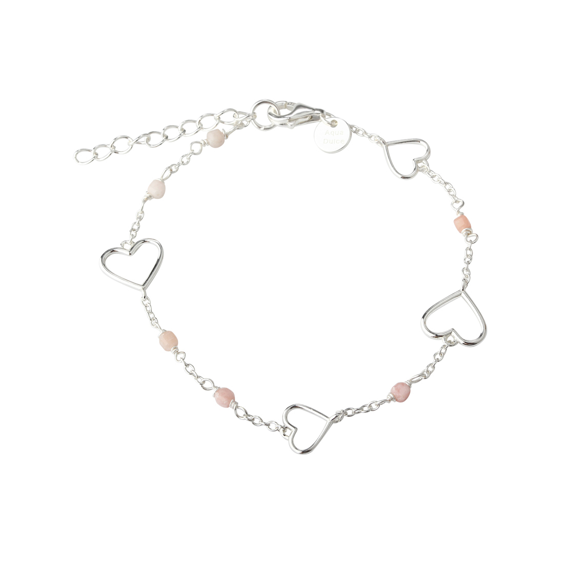 ALMA armbånd i sølv med åbne hjerter og rosa perler