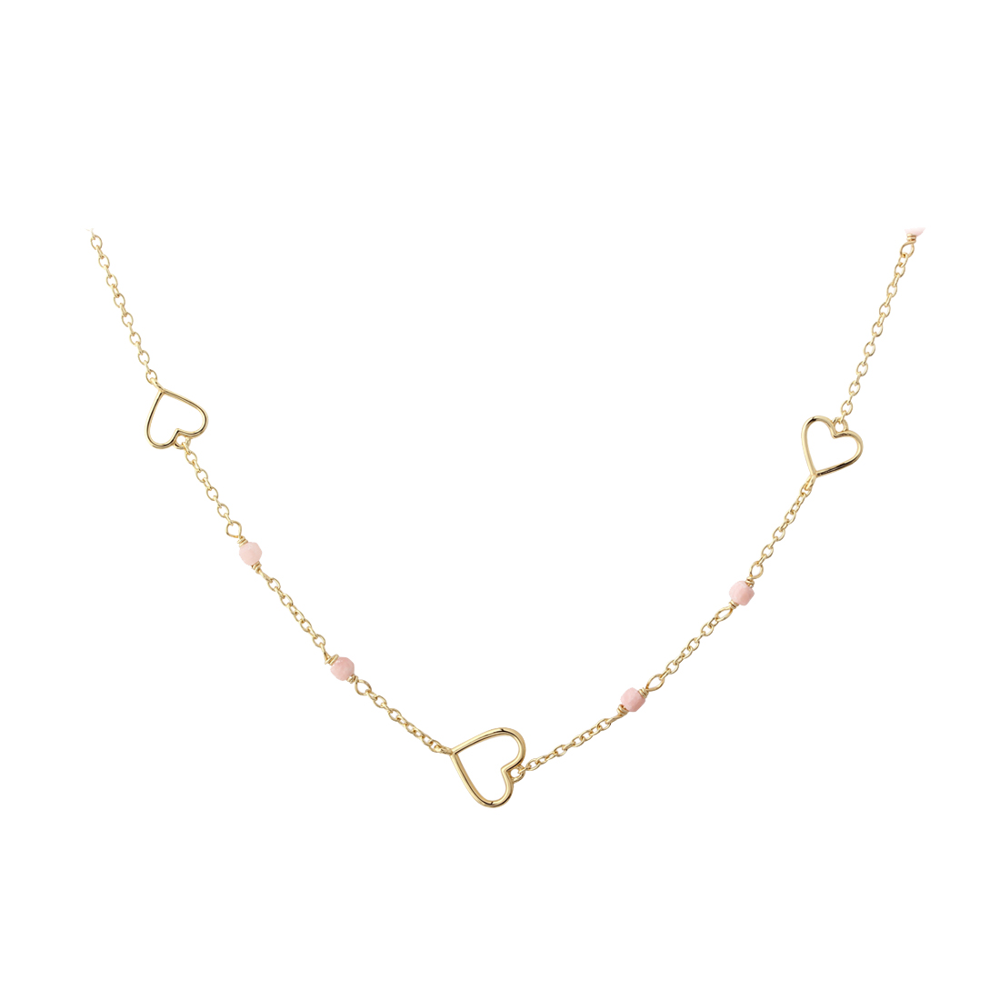 ALMA halskæde i forgyldt sølv med hjerter og rosa perler