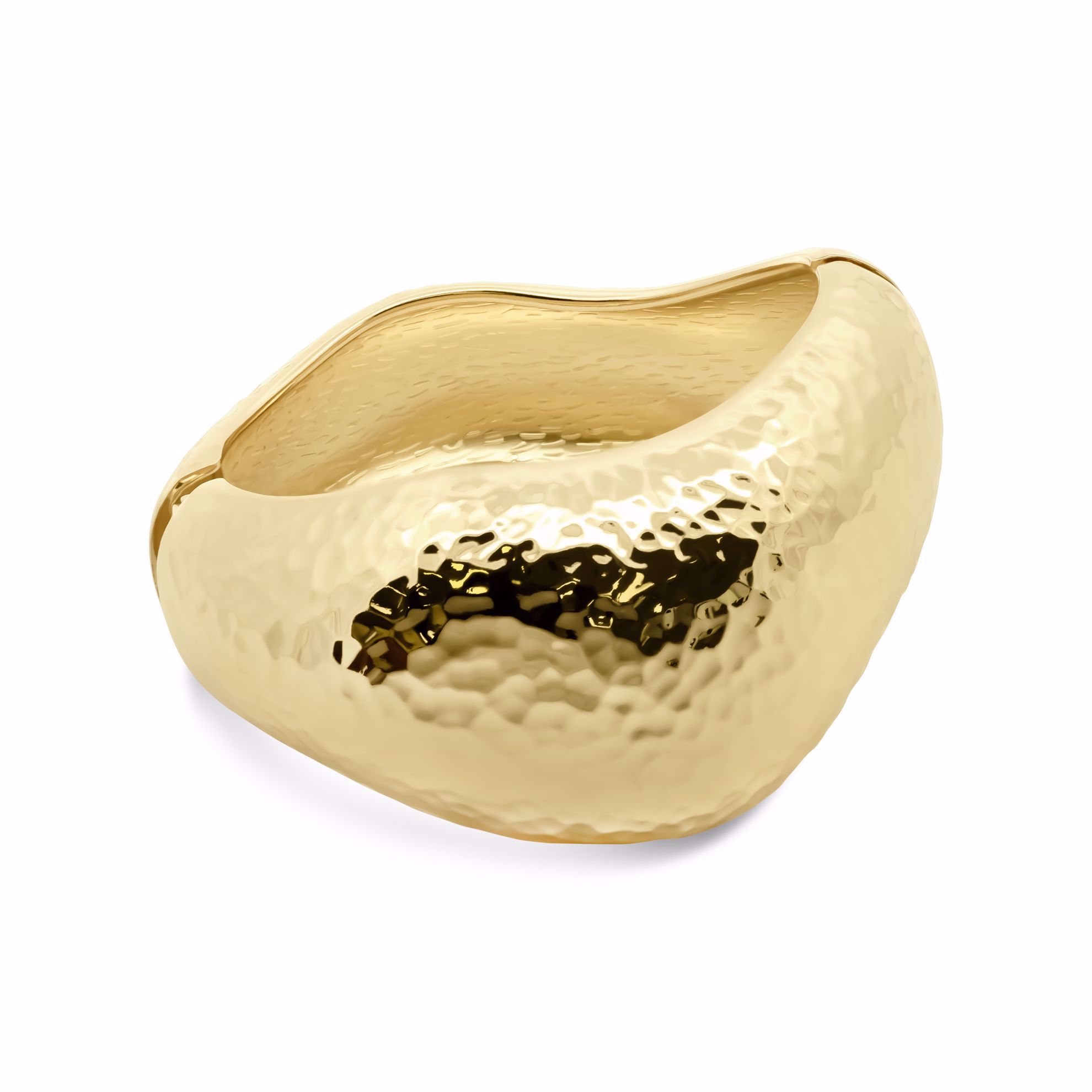 Denne armring fra CO88 er lavet i rustfrit stål og belagt med slidstærk PVD‑guldbelægning, som giver en varm og holdbar guldfarve. Designet har en organisk, let bølget form med en hamret overflade, der giver armbåndet et moderne og karakterfuldt udtryk. Den faste form gør det nemt at tage af og på, og armringen fungerer både alene og sammen med andre smykker.