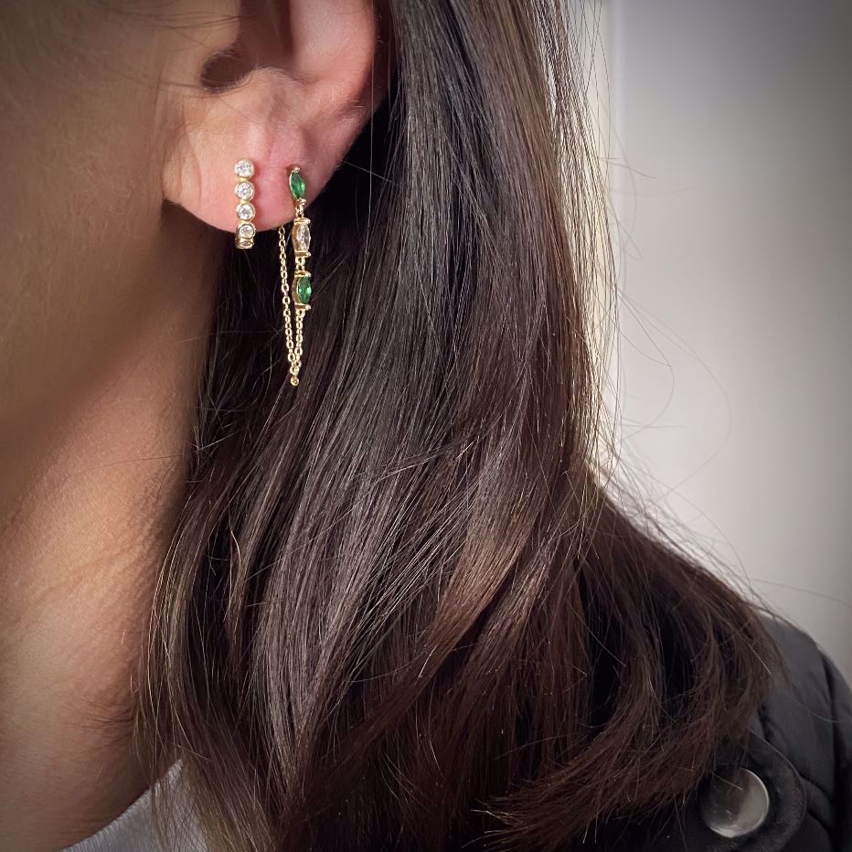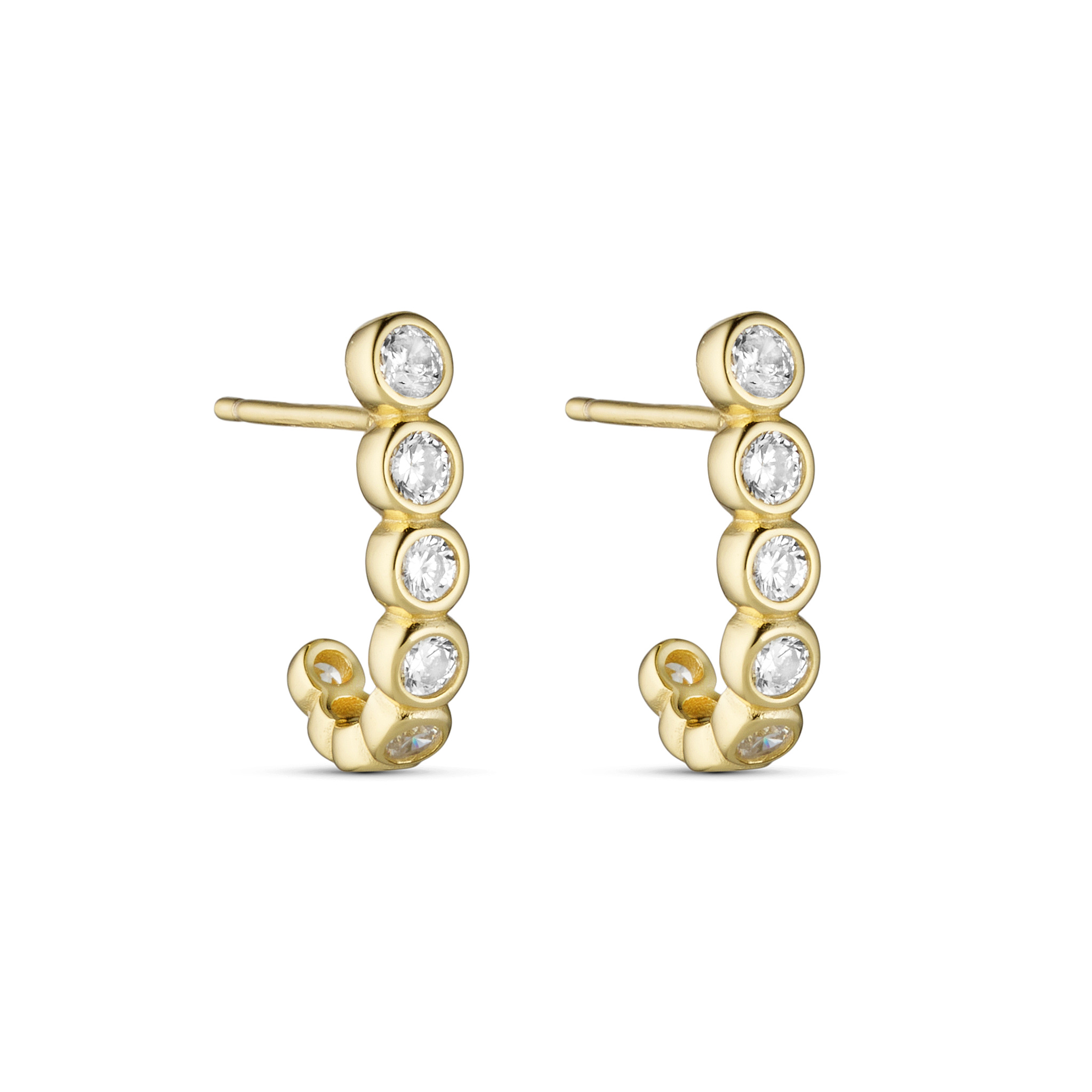 Disse ørestikker fra Seville Jewelry er lavet i forgyldt 925 sterling sølv og sat med otte klare zirkonia, der ligger i små rørfatninger langs forsiden. De måler 1,4 cm i længden og har et roligt, enkelt udtryk, der gør dem nemme at bruge både til hverdag og når man vil have lidt mere blikfang uden at det bliver overdøvende.