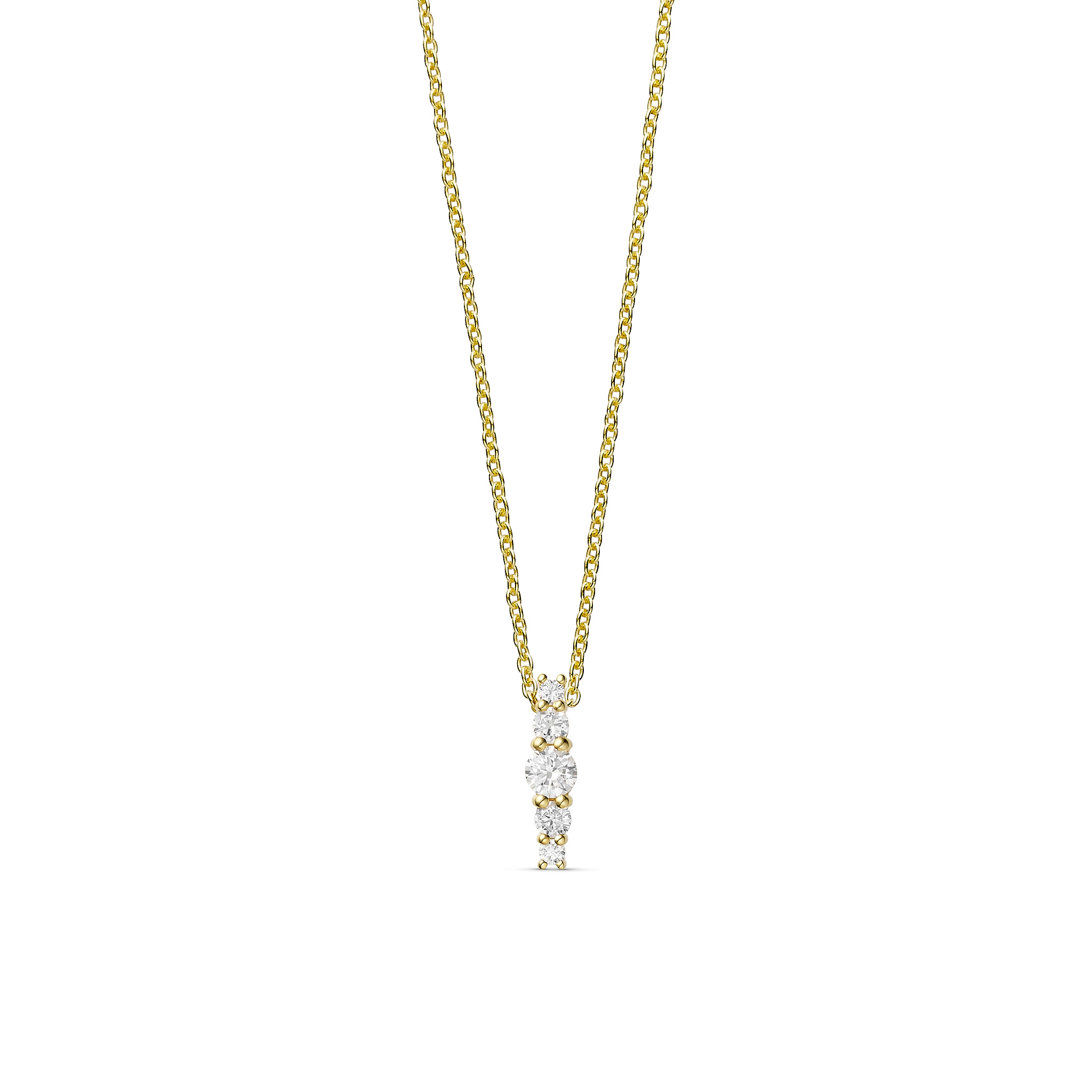 Denne halskæde fra Guld & Sølv Design er udført i forgyldt 925 sterling sølv og har et vedhæng med klare zirkonia, der ligger i en lodret række. Det slanke design giver smykket en enkel og tidløs stil, som gør det nemt at kombinere med andre kæder eller bruge alene for et rent udtryk.