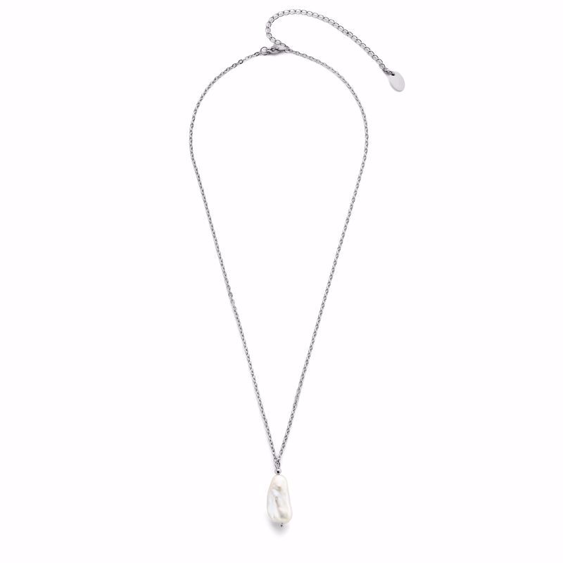 Halskæde med barok perle – enkel, naturlig og tidløs i stål