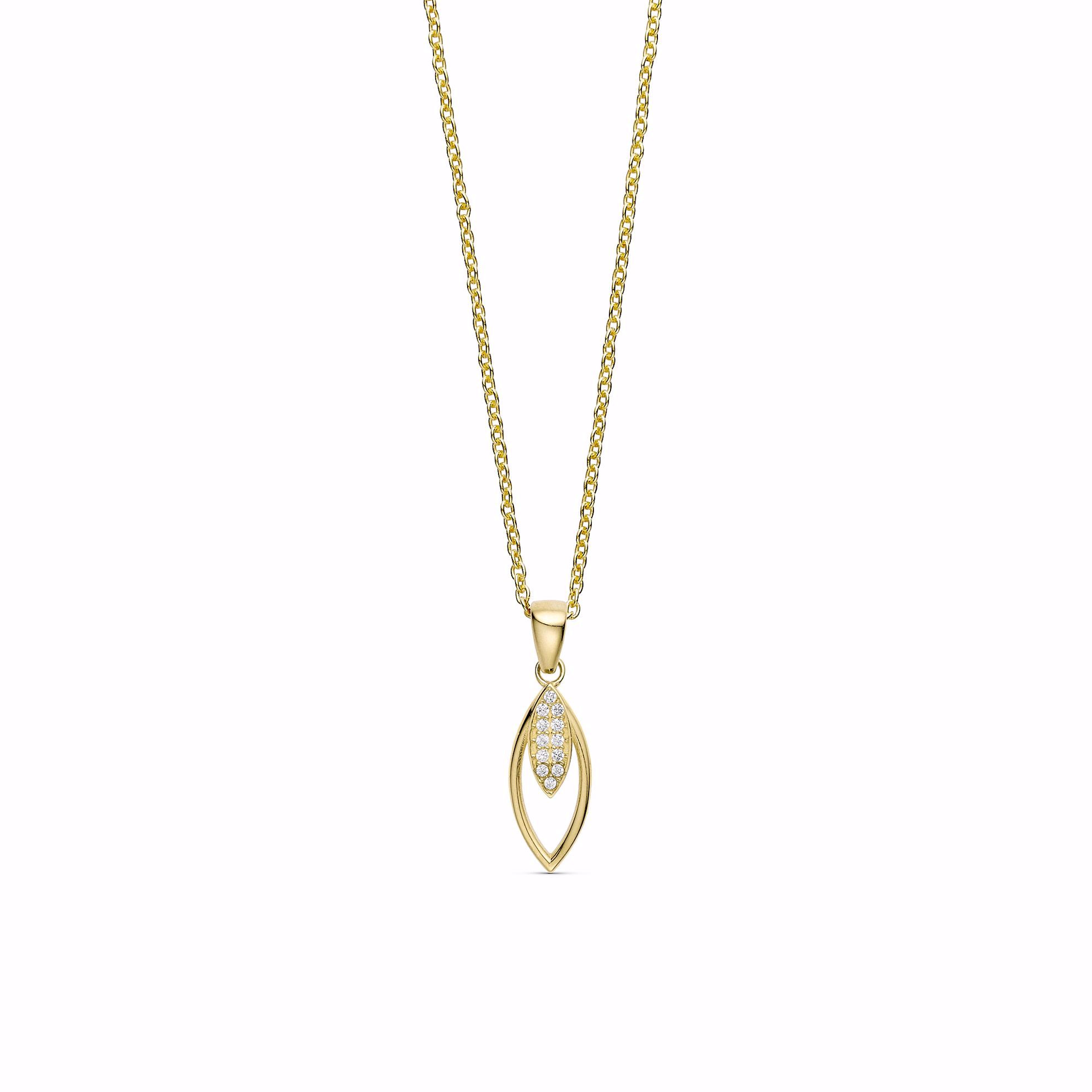 Halskæde med marquise vedhæng i 8 kt guld og zirkonia – Guld & Sølv Design