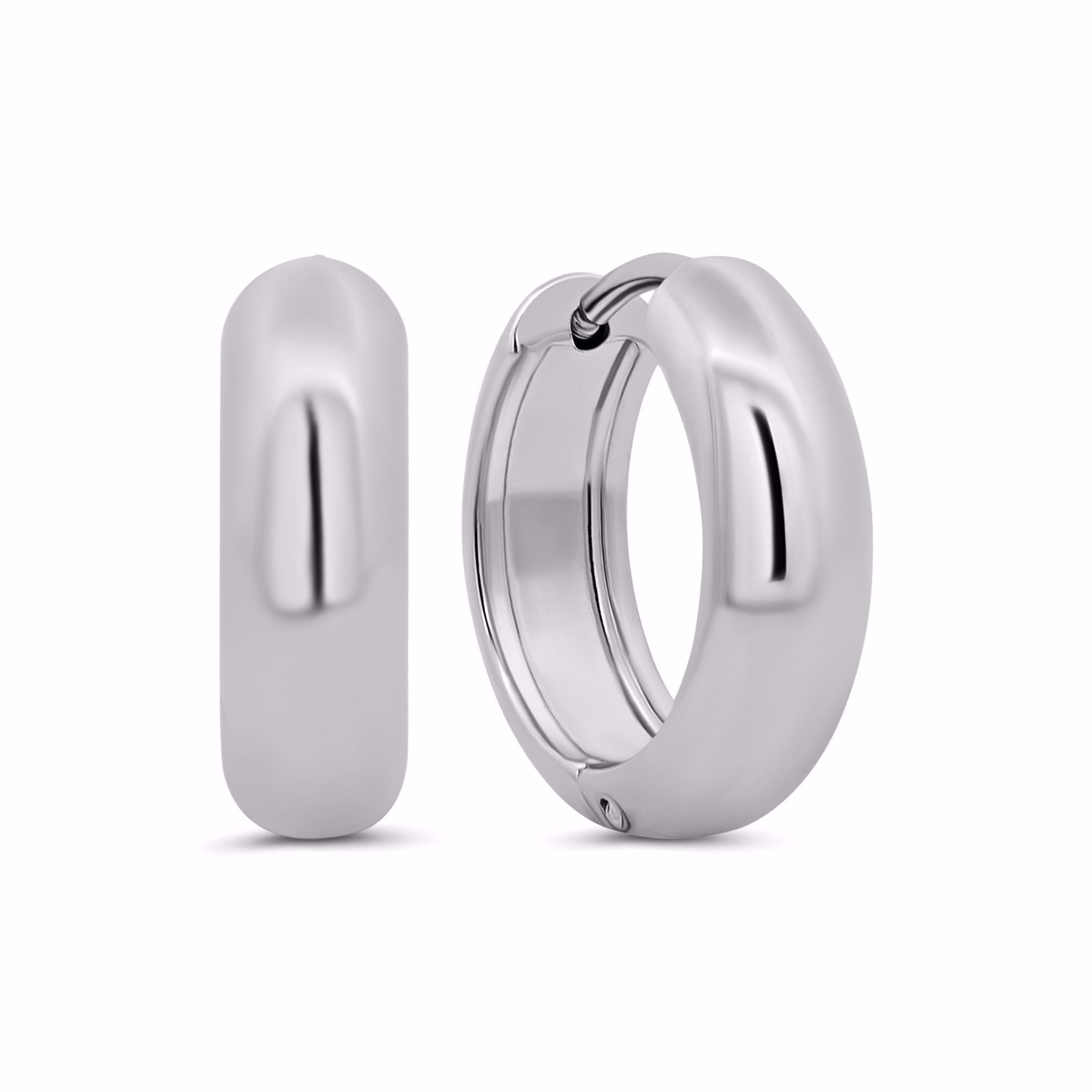 Den blanke ståloverflade giver et skarpt og stilrent look, som holder sig flot i brug. Formen er afrundet og chunky på den elegante måde, hvilket gør dem synlige, selvom de er små og enkle. De er lette at bære og passer ind i enhver smykkesamling.
