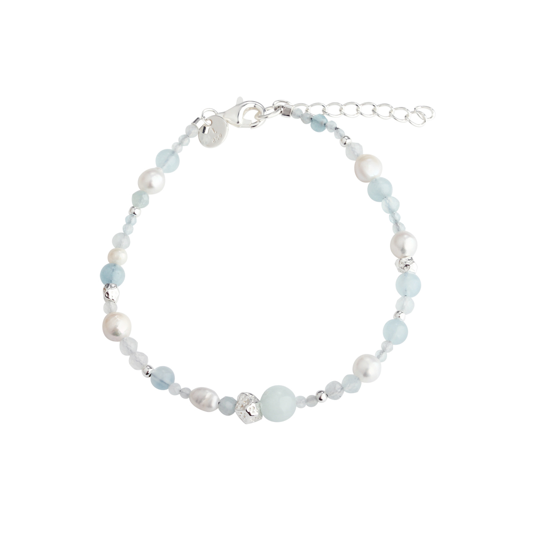 Sinna perlearmbåndet fra Aqua Dulce er et smukt og let smykke i 925 sterling sølv. Armbåndet er sammensat af fine perler & sten i bløde nuancer, der skaber et harmonisk og elegant udtryk. Kombinationen af glatte og facetslebne perler giver et diskret spil i lyset, mens det enkle sølvlook gør armbåndet nemt at style både alene og sammen med andre smykker.