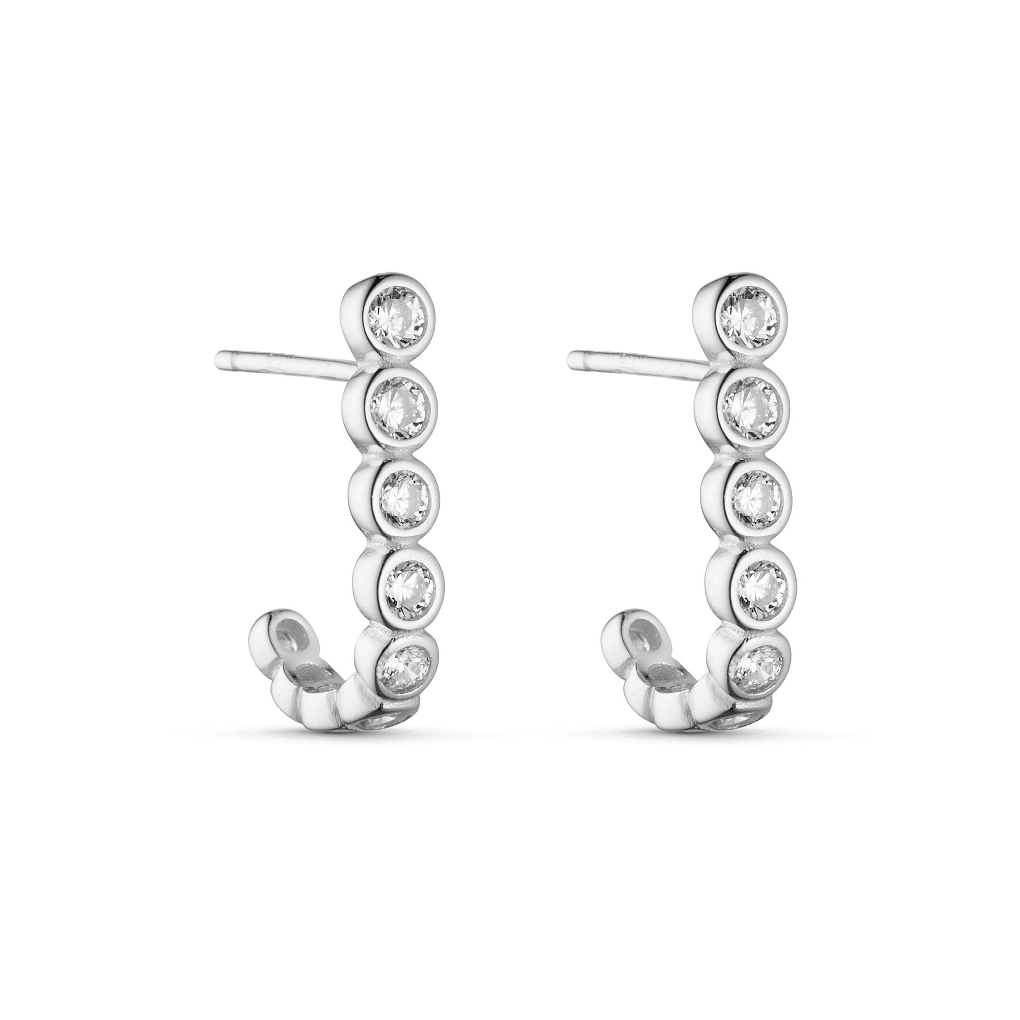 Disse ørestikker fra Seville Jewelry er lavet i 925 sterling sølv og har ni klare zirkonia, der ligger i små rørfatninger på række. De er 1,6 cm lange og har et let og enkelt udtryk, som passer godt både til hverdagsbrug og når man gerne vil have lidt ekstra lys i looket uden at det bliver for meget.