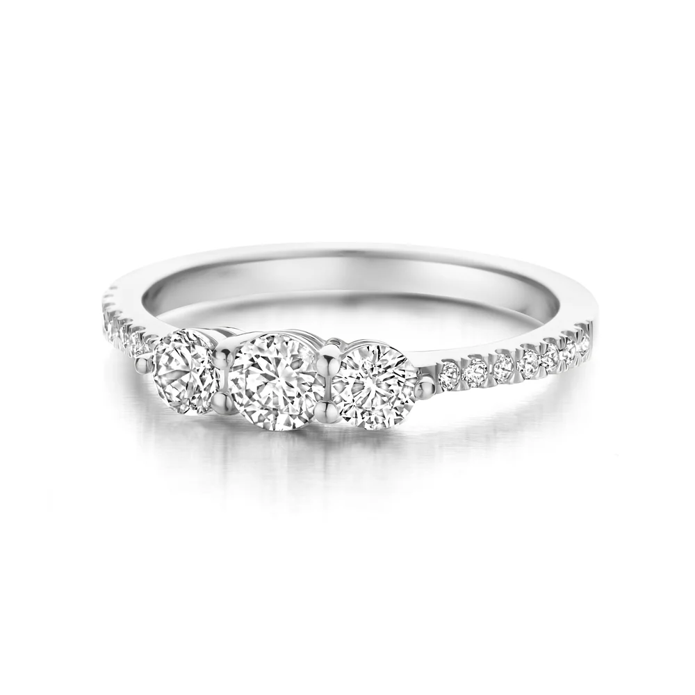 Thalia ring i genanvendt 925 sterlingsølv med tre klare zirkonia i midten og små sten langs ringskinnen.