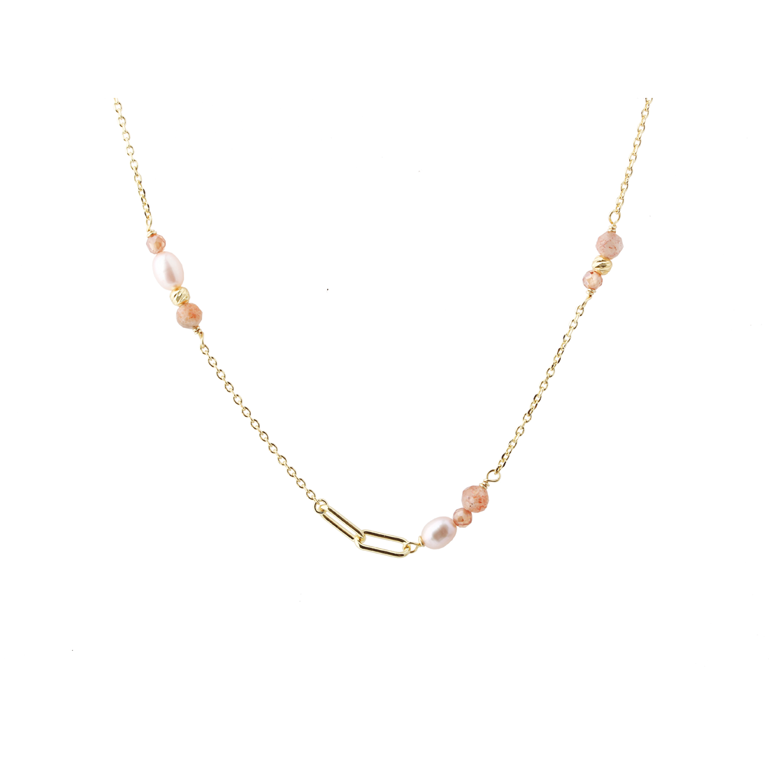 Sunella halskæde i forgyldt sølv med sunstone, ferskvandsperler og zirkonia